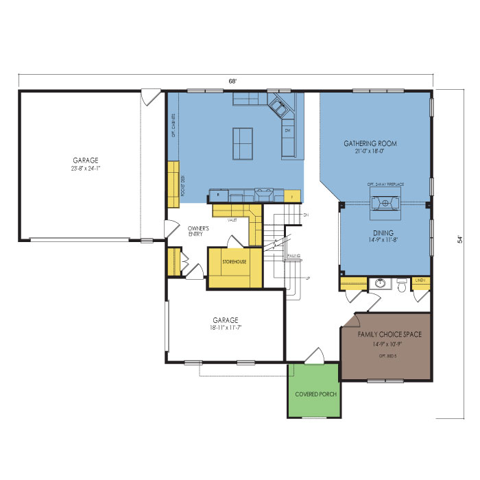 A part of our dream series, the tamarack floor plan features 3 bedrooms and 1.5 bathrooms with a foot print of 44x30 feet and 1342 total square feet of living space.