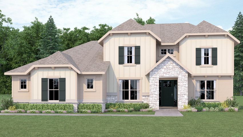 A part of our Designer Series, the Hazeltine floor plan features 4 bedrooms and 3.5 bathrooms with a foot print of 60x64 feet and 3133 total square feet of living space. Floor Plan #DN382