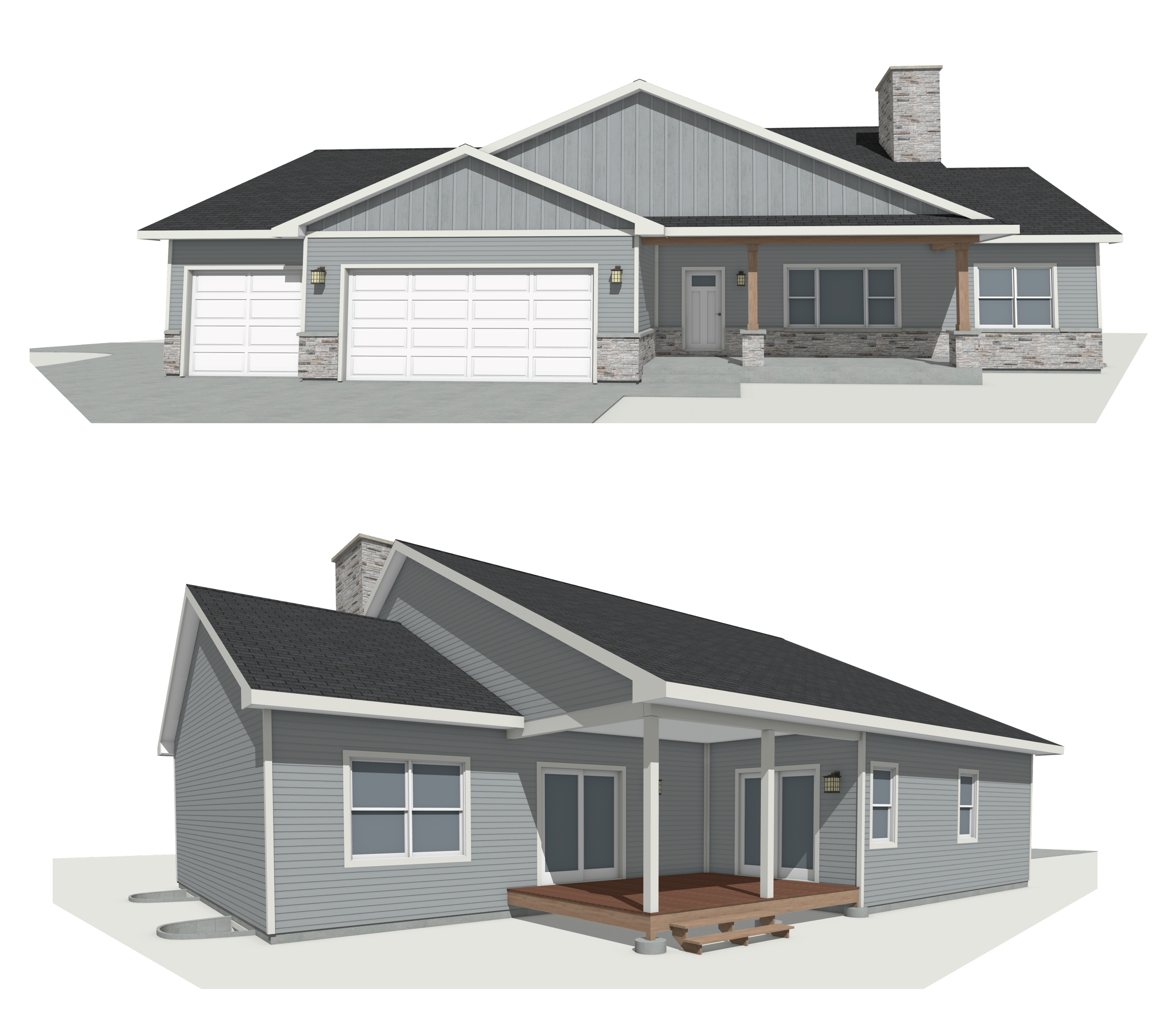 The 1550 sq. ft. of living space plus an additional 1120 sq. ft. of garage space fits neatly on a 72'x52' footprint, giving you design flexibility on city, suburban, or acreage lots.