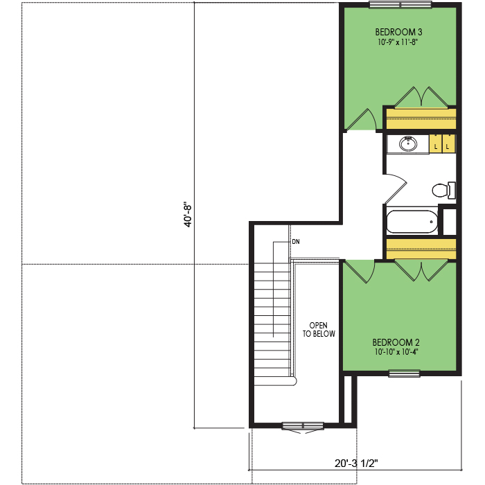 A part of our Resort Series, the Longs Peak floor plan features 3 bedrooms and 2.5 bathrooms with a foot print of 42x46 feet and 1762 total square feet of living space. Floor Plan #RN320