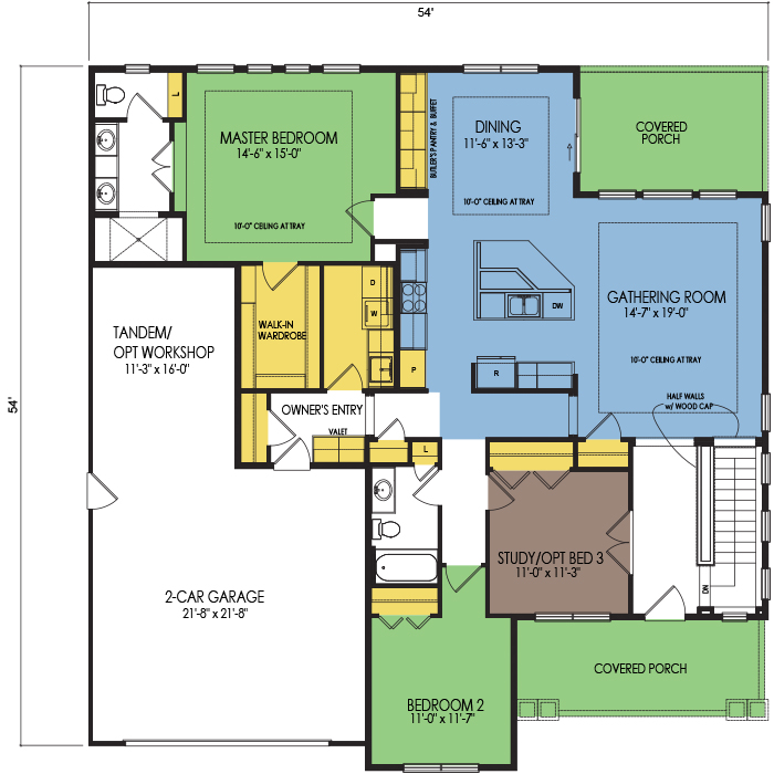 A part of our Resort Series, the McKinley floor plan features 2 bedrooms and 2 bathrooms with a foot print of 54x54 feet and 1920 total square feet of living space. Floor Plan #RN137