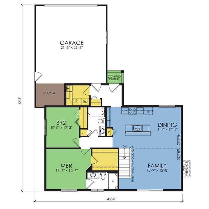 A part of our dream series, the tamarack floor plan features 3 bedrooms and 1.5 bathrooms with a foot print of 44x30 feet and 1342 total square feet of living space.