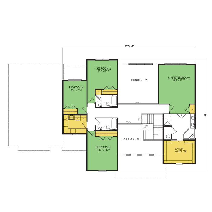 A part of our Architect series, the Wellington 2 story floor plan features 5 bedrooms and 4.5 bathrooms with a footprint of 82x50 feet and 4096 total square feet of living space. Floor Plan #AR287